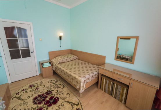 В номере: полутораспальная кровать, прикроватная тумбочка, встроенный шкаф, стол, кресло, телевизор, холодильник, телефон, набор посуды