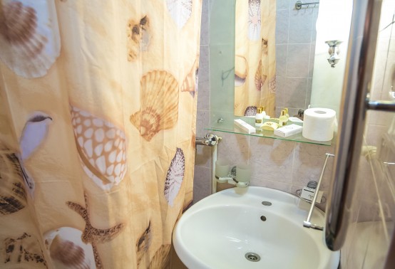 Санузел: унитаз, умывальник, душ, фен